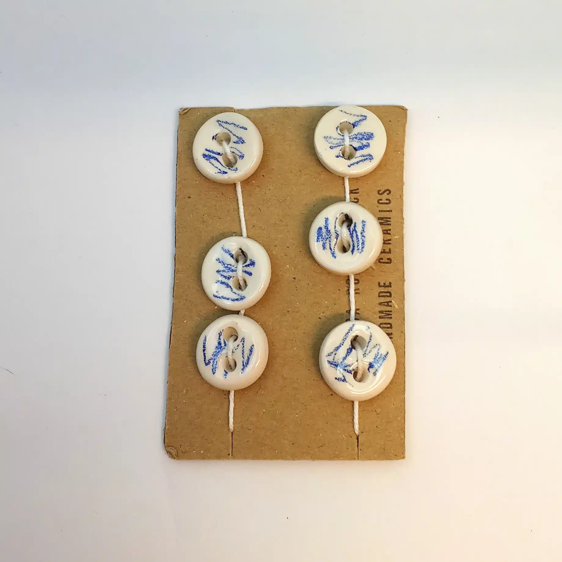 Round shape buttons, hand-modeled and decorated. The buttons are sold in a 6 pieces set.