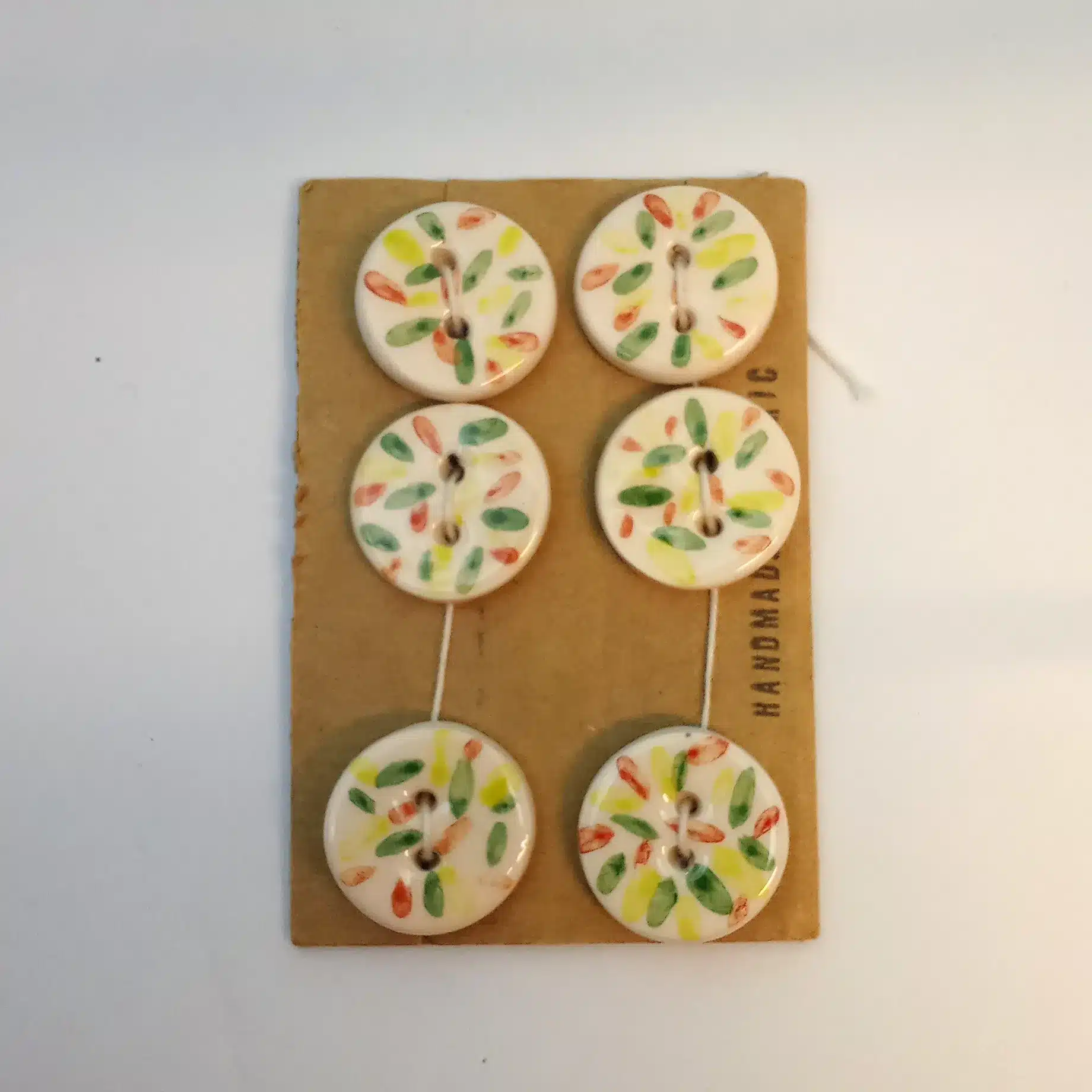 Round shape buttons, hand-modeled and decorated. The buttons are sold in a 6 pieces set.