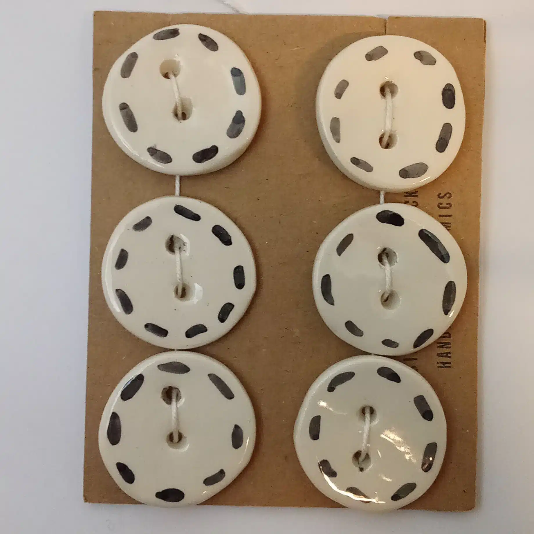 Round shape buttons, hand-modeled and decorated. The buttons are sold in a 6 pieces set.