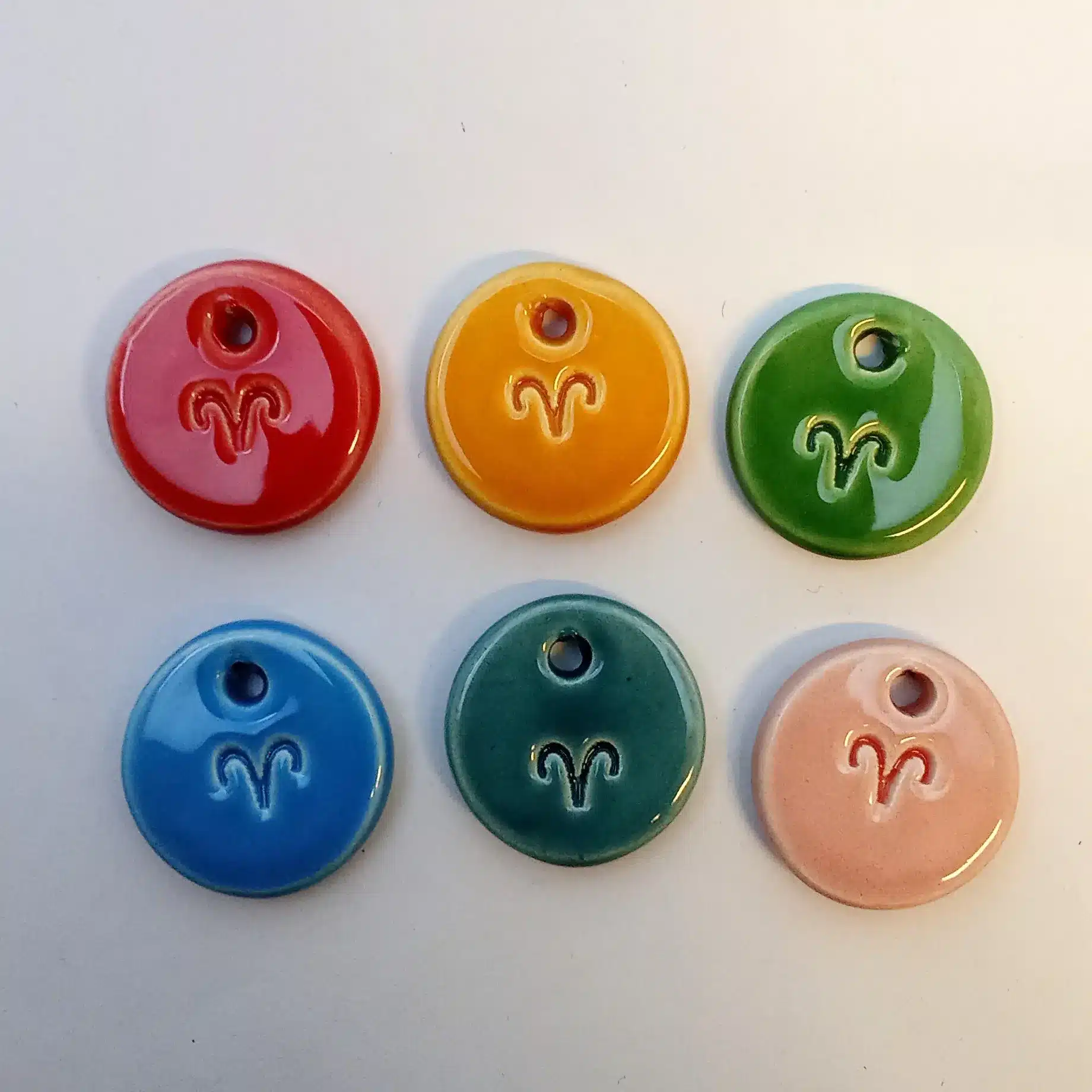 Ceramic charm with aries symbol supplied with metal ring. When you purchase a bracelet or any accessory with more than one charm you can decide the combinations and/or sequence of charms writing us in the checkout notes: