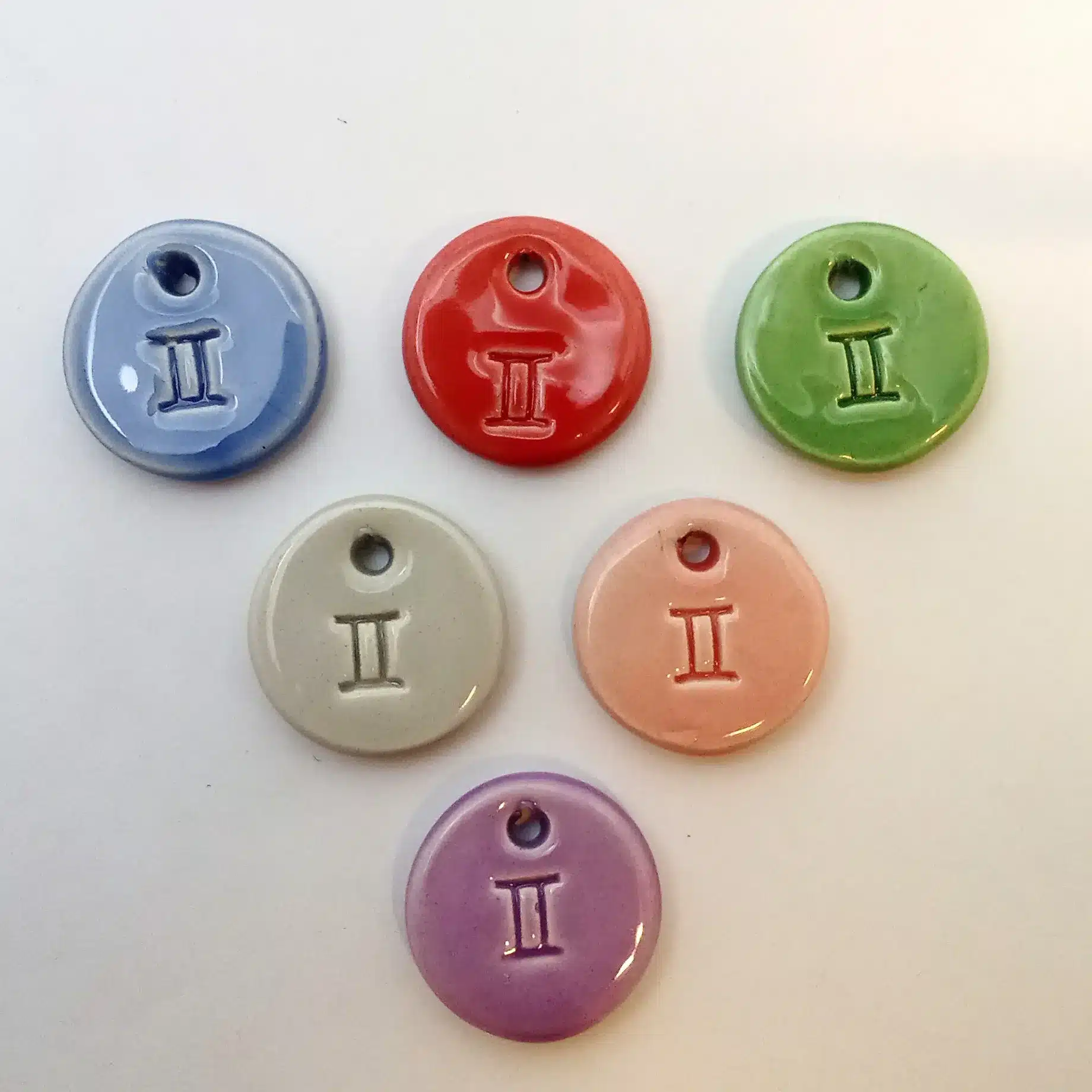 Ceramic charm with gemini symbol supplied with metal ring. When you purchase a bracelet or any  accessory with more than one charm you can decide the combinations and/or sequence of charms writing us in the checkout notes: