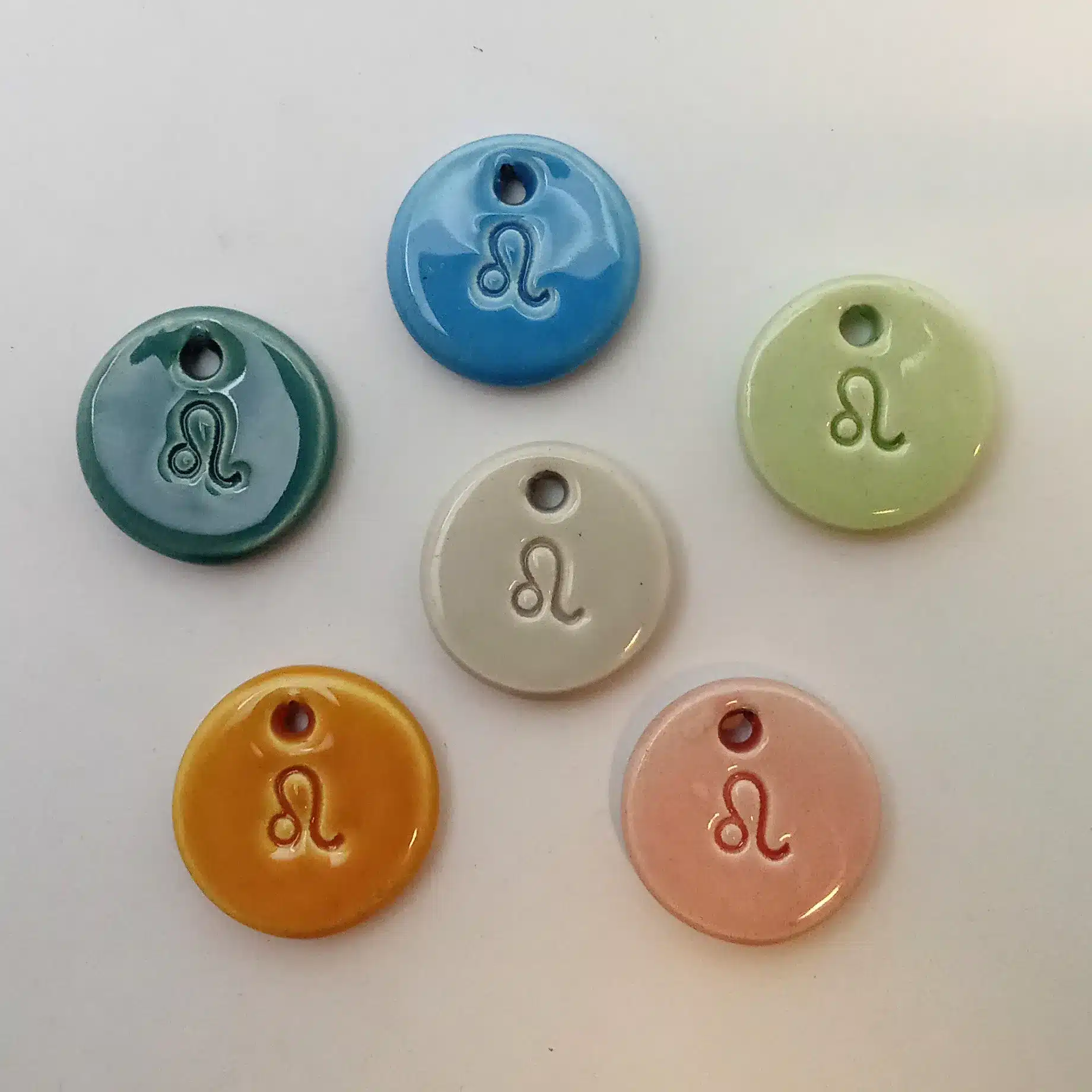 Ceramic charm with leo symbol supplied with metal ring. When you purchase a bracelet or any accessory with more than one charm you can decide the combinations and/or sequence of charms writing us in the checkout notes: