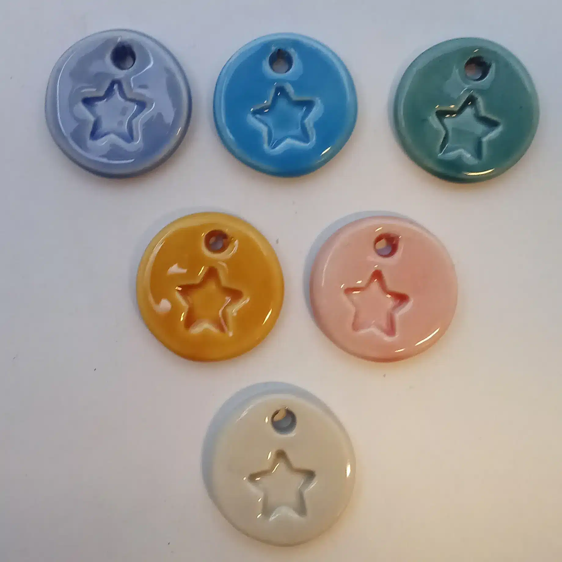 Ceramic charm with star symbol supplied with metal ring. When you purchase a bracelet or any accessory with more than one charm you can decide the combinations and/or sequence of charms writing us in the checkout notes: