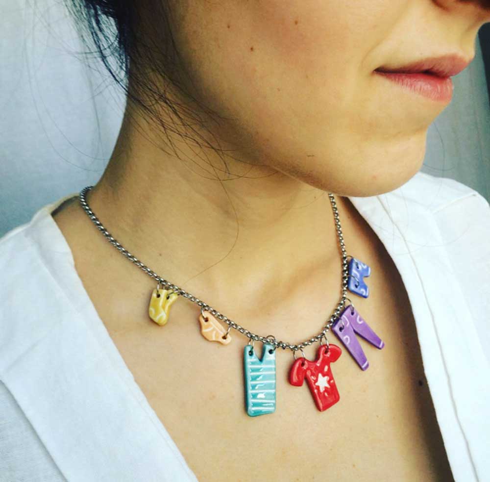 Hand-modeled and decorated necklace.