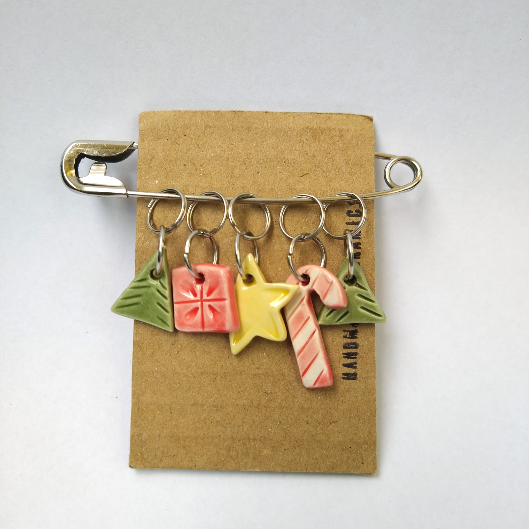 Hand-modeled and decorated stitch-markers. They come in 5 pieces set.